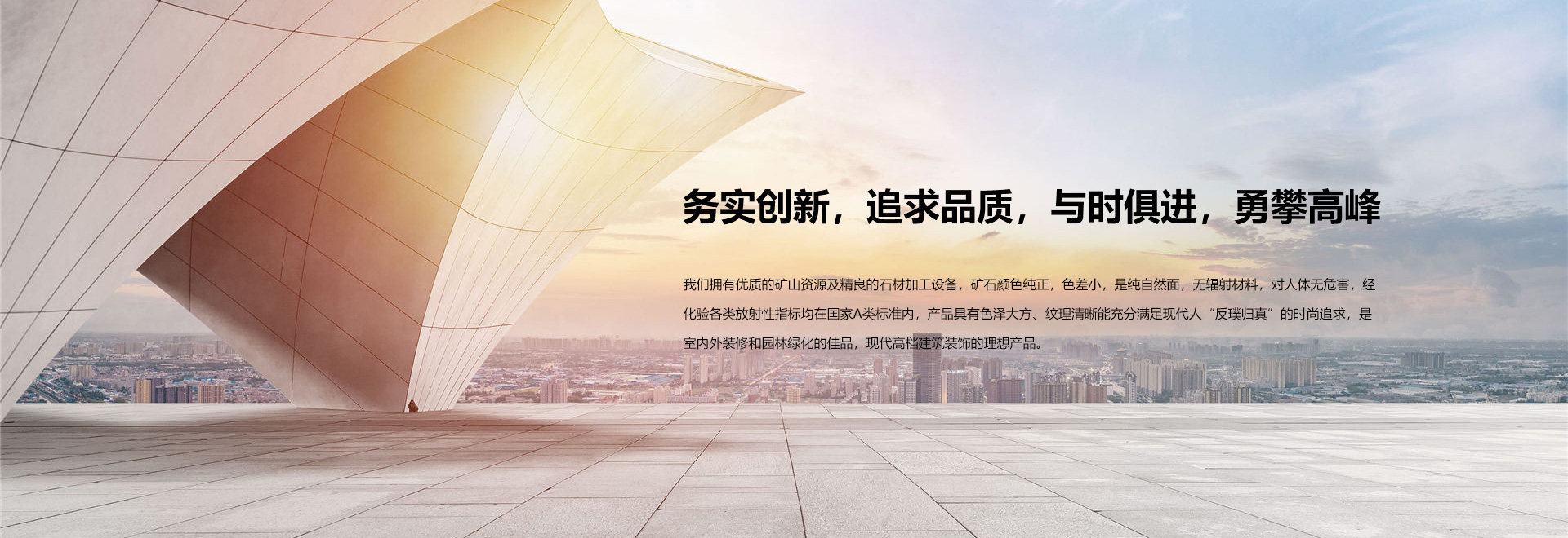 我們擁有優(yōu)質(zhì)的礦山資源及精良的石材加工設(shè)備,礦石顏色純正,色差小,是純自然面,無輻射材料,對人體無危害,經(jīng)化驗(yàn)各類放射性指標(biāo)均在國家A類標(biāo)準(zhǔn)內(nèi),產(chǎn)品具有色澤大方、紋理清晰能充分滿足現(xiàn)代人“反璞歸真”的時(shí)尚追求,是室內(nèi)外裝修和園林綠化的佳品,現(xiàn)代高檔建筑裝飾的理想產(chǎn)品。